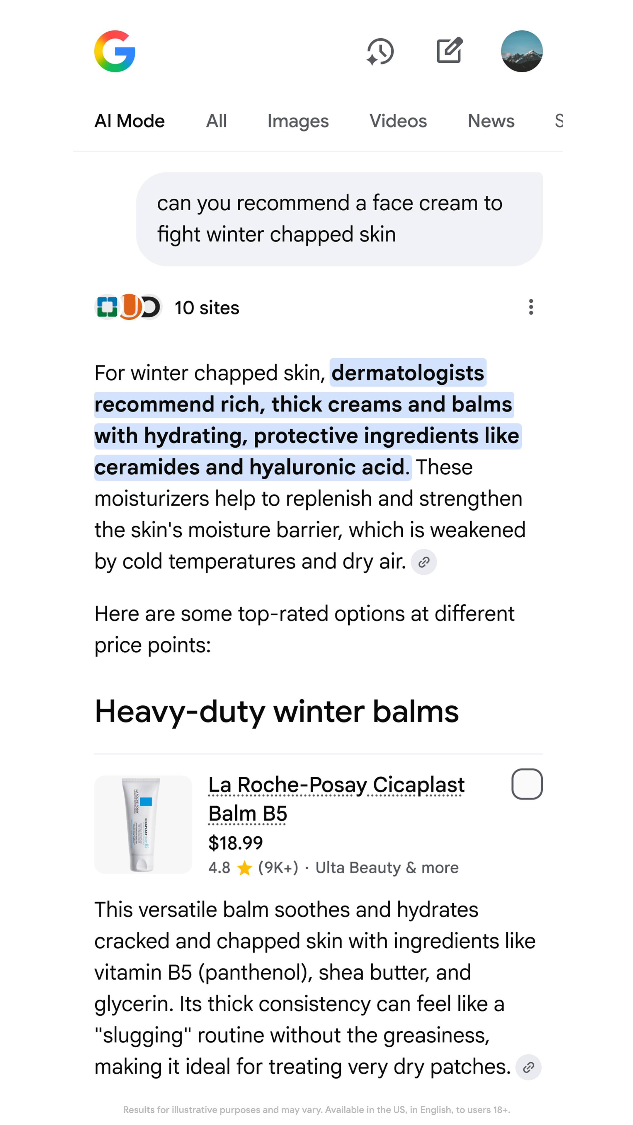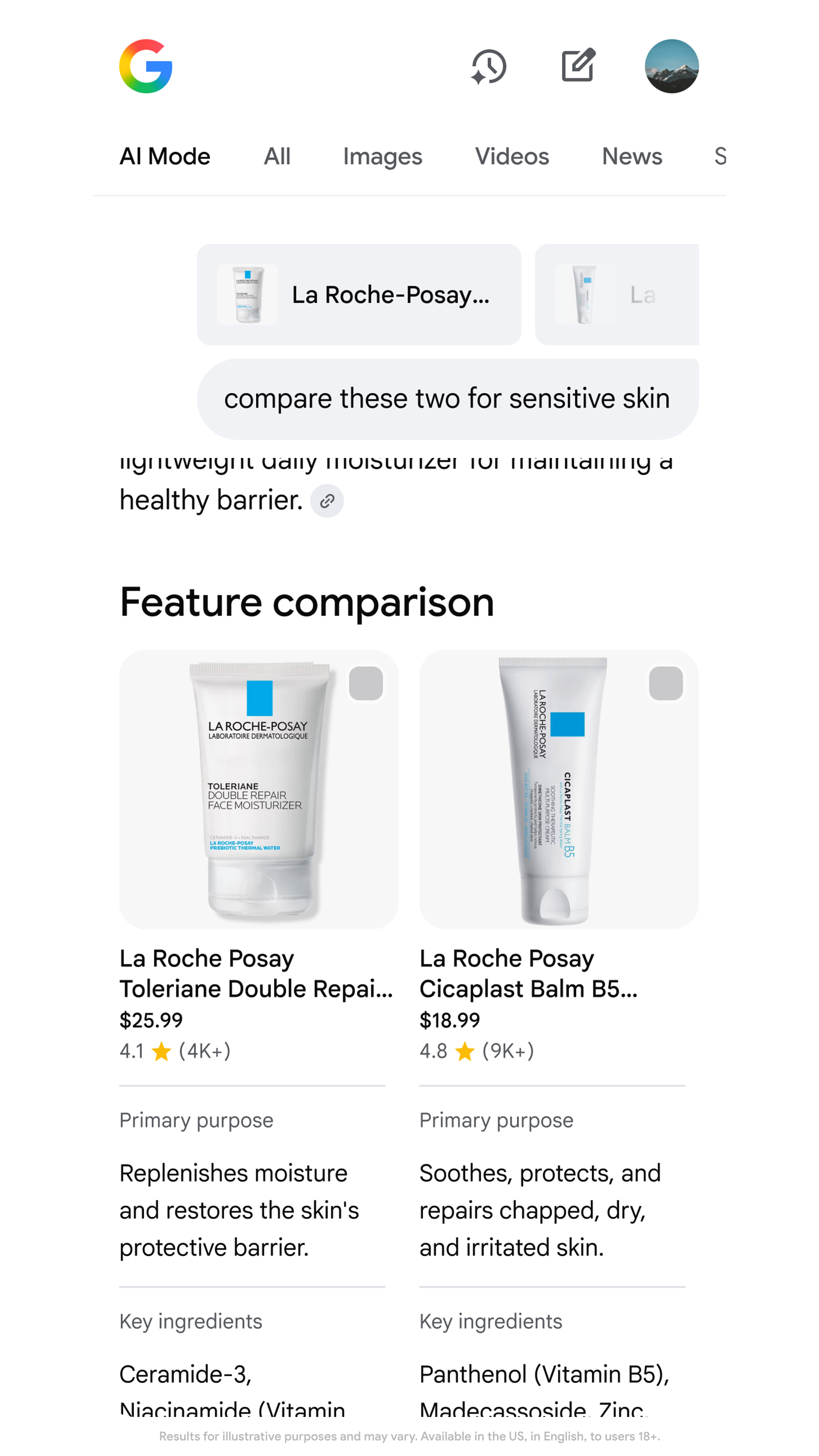 Les résultats sont adaptés au type de question posé. Par exemple, une demande visuelle génèrera des grilles d’images cliquables et achetables. Une requête comparative entre produits engendrera des tableaux côte à côte mettant en évidence des critères comme les ingrédients, la texture, ou les enseignements issus des avis.