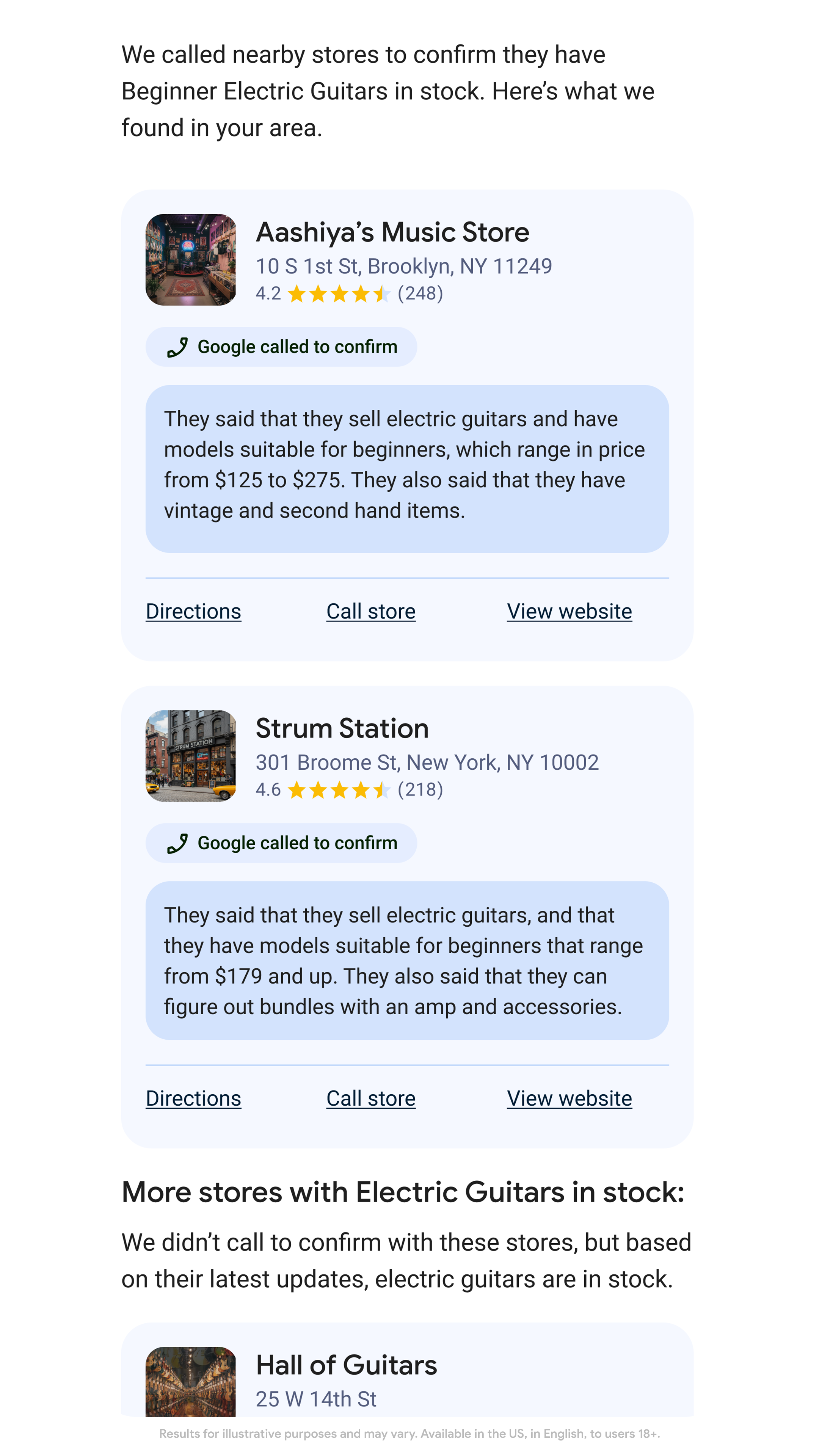 Image Credit: GoogleAprès avoir répondu à quelques questions sur le produit recherché et le budget, le système de Google appelle les commerces proches, pose les questions nécessaires, puis envoie un récapitulatif par e‑mail ou SMS.