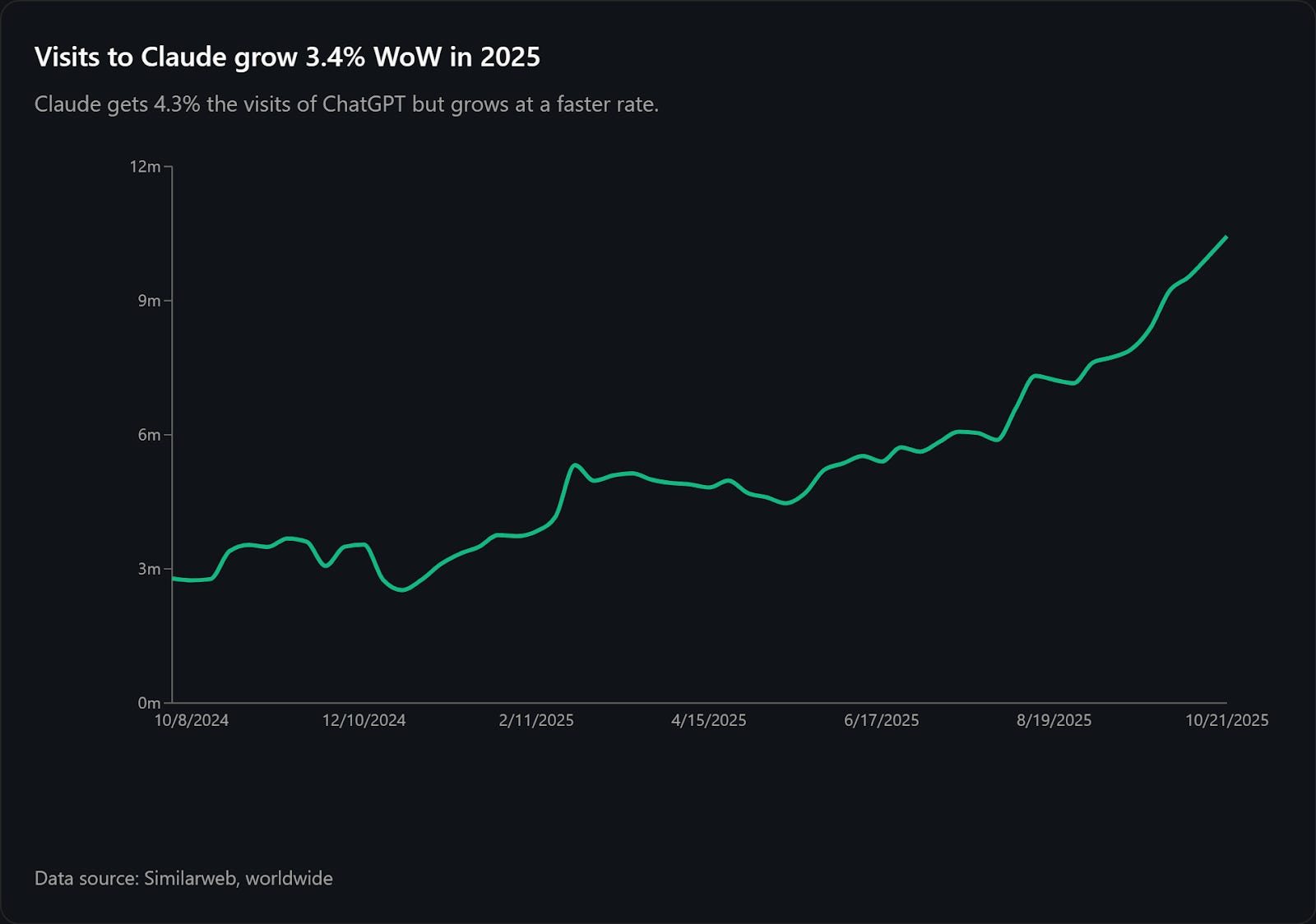 La saisonnalité commerciale a donc un rôle secondaire : ni ChatGPT (focalisé grand public) ni Claude (axé entreprise) n’ont vu une baisse de leurs visites globales.